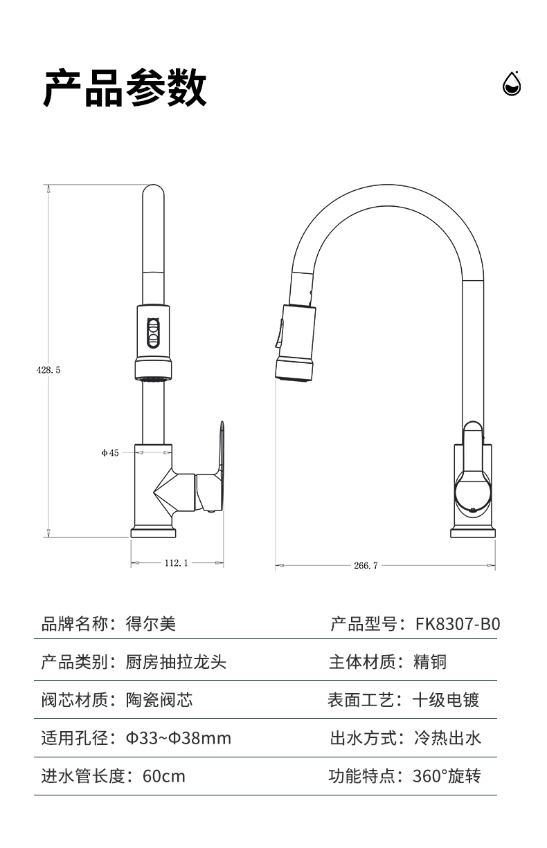 FK8307-B0 廚房抽拉龍頭