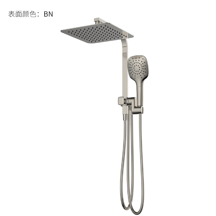 Square wide top spray; Z-shaped tee; Press to switch top spray/shower water