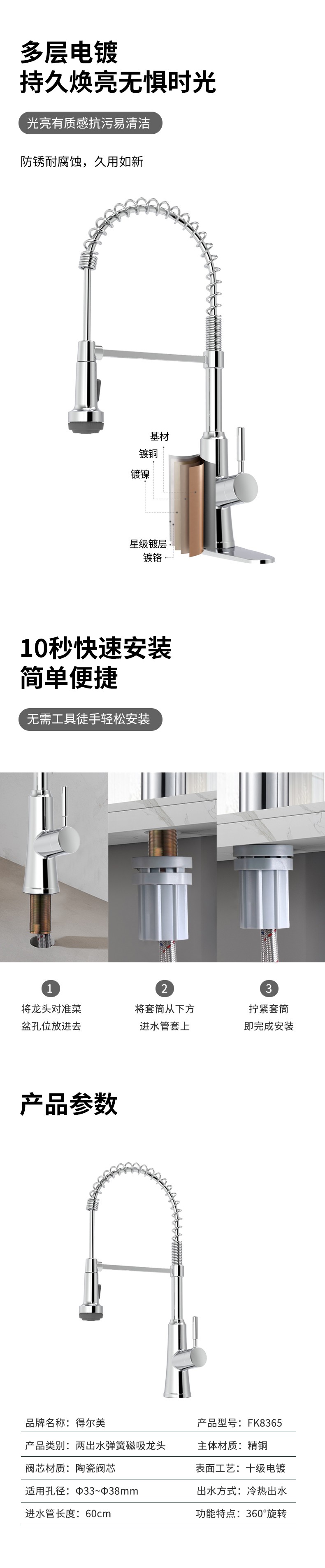 FK8365 廚房彈簧抽拉龍頭