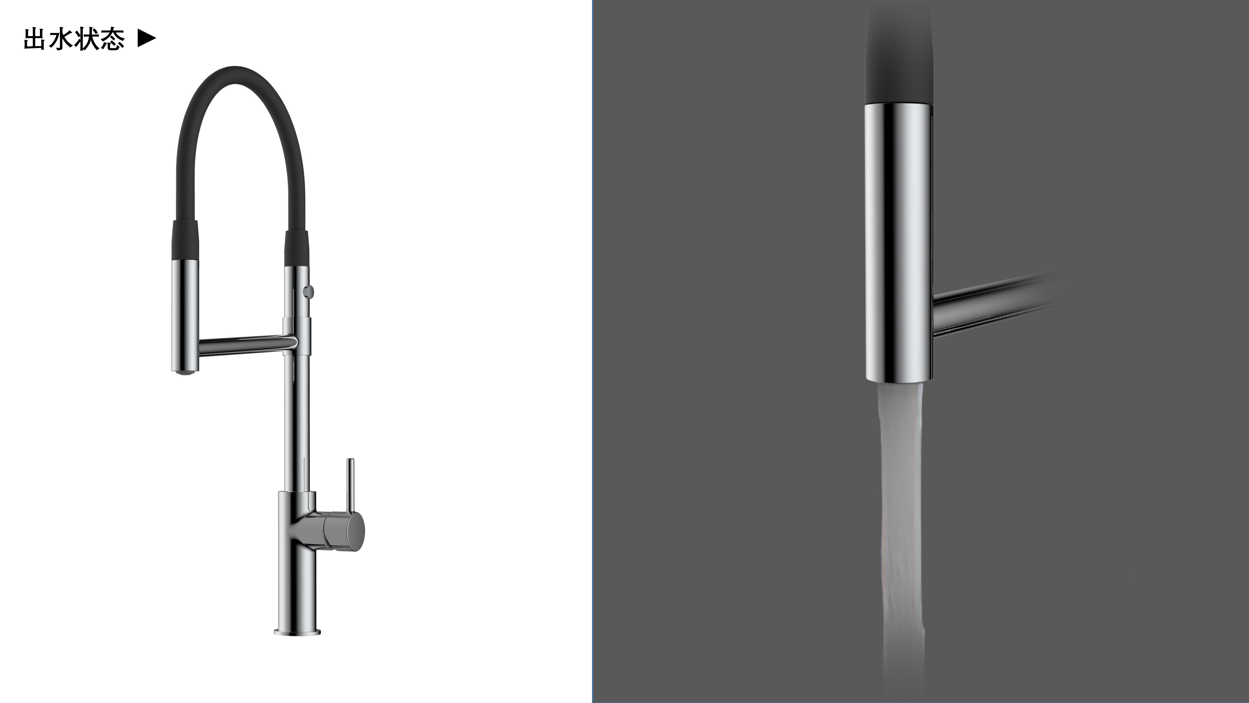 cUPC/ NSF61/ AB100/ NSF372/ Lead Free/ ADA認證;磁吸抽拉廚房龍頭;磁吸抽拉頭可旋轉展開使用,不用時旋轉回原位磁吸固定;兩種出水可根據需求切換